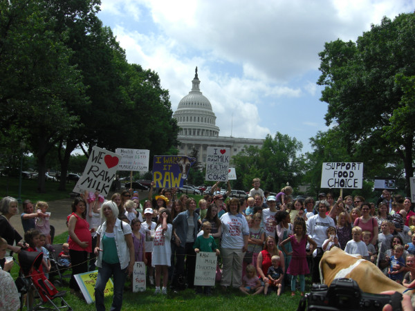 I wouldn’t say that I’m a mover and a shaker or that I’m a big rally goer. I was really debating Sunday evening whether we were going to trek into DC or not. I knew the weather was a little iffy, and I wasn’t sure I had the energy to bring three kidos under 3 ½ via metro into the city for the day with a chance of rain in the forecast. I was pretty close to deciding I was going to stay home when I realized that I often resort to the easy and try to avoid rocking the ship. I often want others to fight my battles for me. I’d rather not be seen as the odd ball out or the one standing in the gap. I felt convicted that if I’m going to complain about what is happening to this farmer, Dan Alger, and I want to continue to purchase my raw milk, then I needed to do something about it. So we went!