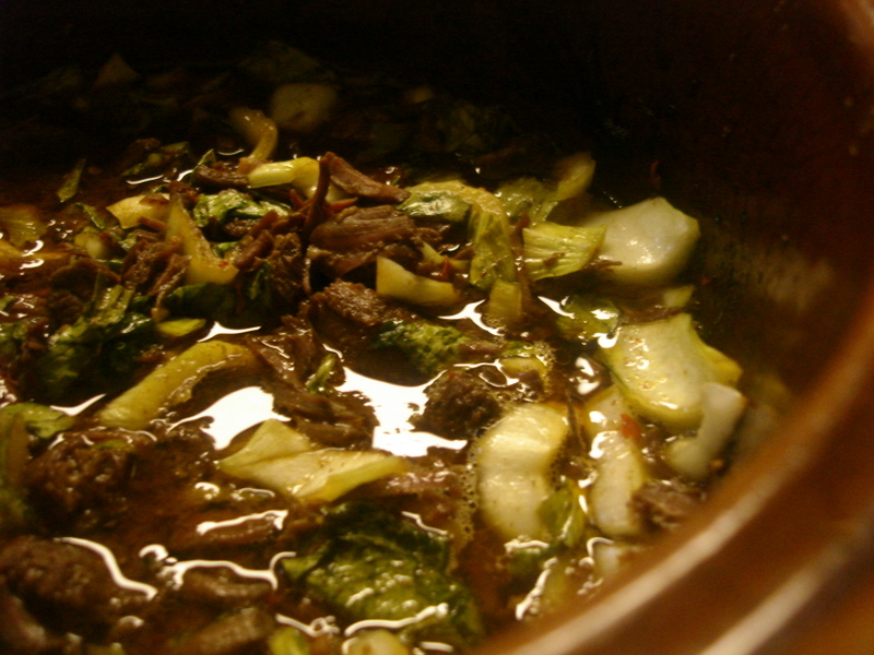 Gently fold the bok choy into the pork and cook, covered, until heated through, 2 to 4 minutes. Serve over the quinoa.