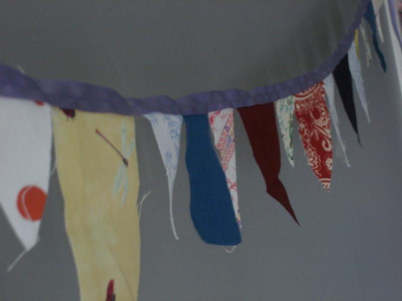 For the banner… I didn’t have any tutorial or instructions, just something I had in mind and wanted to create. I used some ribbon I had on hand and some scrap fabric I also had. I cut the shapes I wanted and then just sewed them to the ribbon. It took all of an hour or two and it was actually a lot of fun. The boys loved watching and also helped me pick what order the shapes and fabric colors should be arranged.