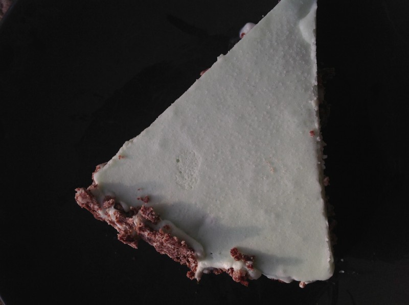 Then for some reason I saw a photo of grasshopper pie and that was all it took. I marched to the kitchen with a mission! The following is what I came up with. The filling definitely isn’t ice cream and it was a bit on the icy side, but FAR better than anything I made last year! And I didn’t even have to get the ice cream maker out! I just mixed all this together, poured it in the pie shell and froze!