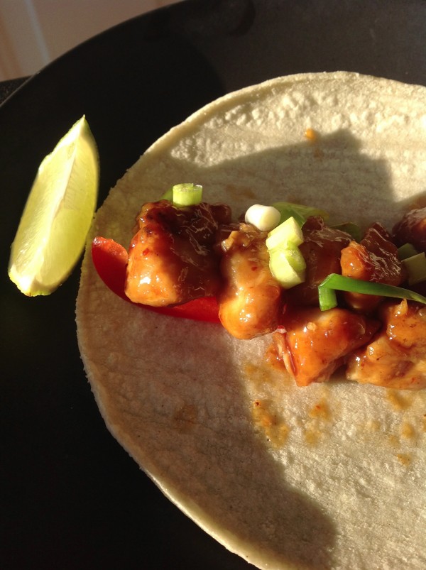 Since I’m often not at home and don’t get to enjoy his fried rice, I was ready for some Asian inspired food, but I didn’t really want to make any stir fry.  Kung Pao Chicken Tacos fit the bill!  It was super delish and we all LOVED it!  I hope to make this again sometime soon!  There wasn’t any leftovers that night!