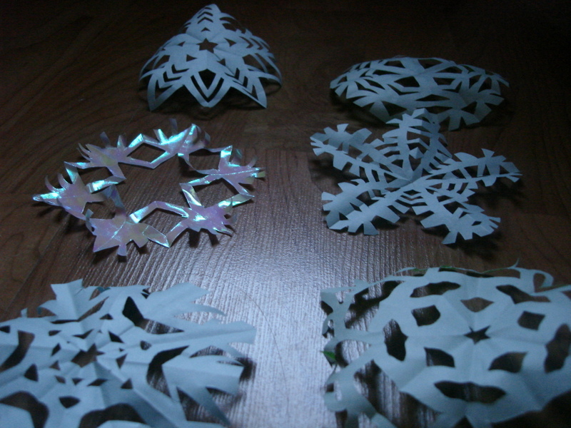 Here are a couple of links where I found some pinterest patterns for the snowflakes. I did mostly five pointed and six pointed snowflakes which was fun to change them up! In order to change the number of points you have to change the way the paper is folded. Click on either of the links above for instructions. I’m hoping I can save a few and reuse them and tape them to the windows and doors after Christmas through the remainder of the winter.