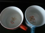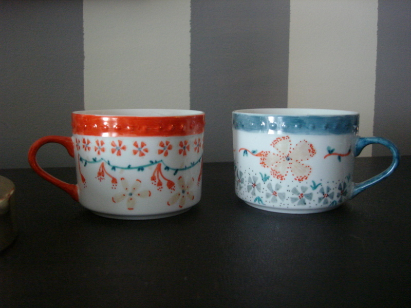 Next are a few cups… I saw a project on pintrest that I wanted to try and find two cups for $1, again at the thrift store! This fit the price budget for an experiment that might not succeed! I found a photo online of a cup that I liked and used it as a guide to design the mugs I had acquired. Each one took less than 1 hour to design and then only needed 1 hour to bake at 400 degrees in the oven. AND… the best part.. I used sharpies to do the artwork, so I didn’t even have to purchase paint or anything! I think they turned out great. I’m planning to use them as artwork or flower cups for the room, but I may actually think about making more for Christmas gifts this year! They were so simple and turned out exactly the way I had hoped!