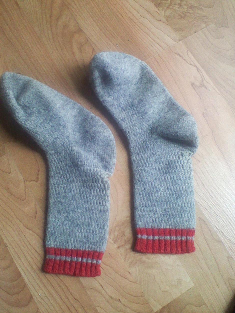 We are doing well thus far! We have gotten rid of almost 600 items! Hubby was cleaning out some of his clothing and he found a pair of wool socks that were a little thin in the toes and had been well felted since they had been through the laundry a few times. I think they had gotten a bit tight too!