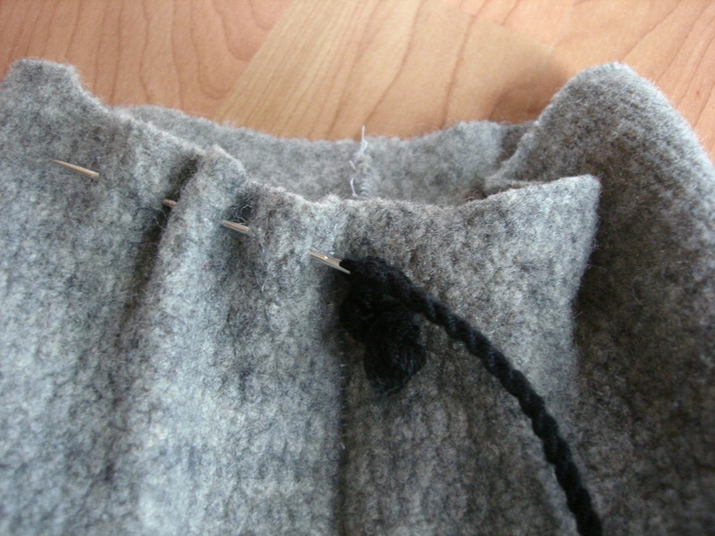 8. Weave the needle with yarn around the top to use as a draw string.DSC00317
