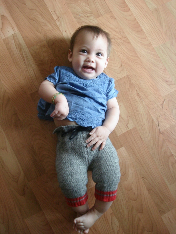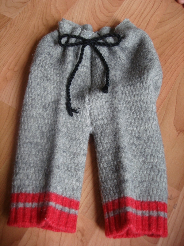 These were men’s wool socks for size 11 feet and now fit an 8 month old 16lb baby tush! A PERFECT reuse of perfectly good wool!!!!
