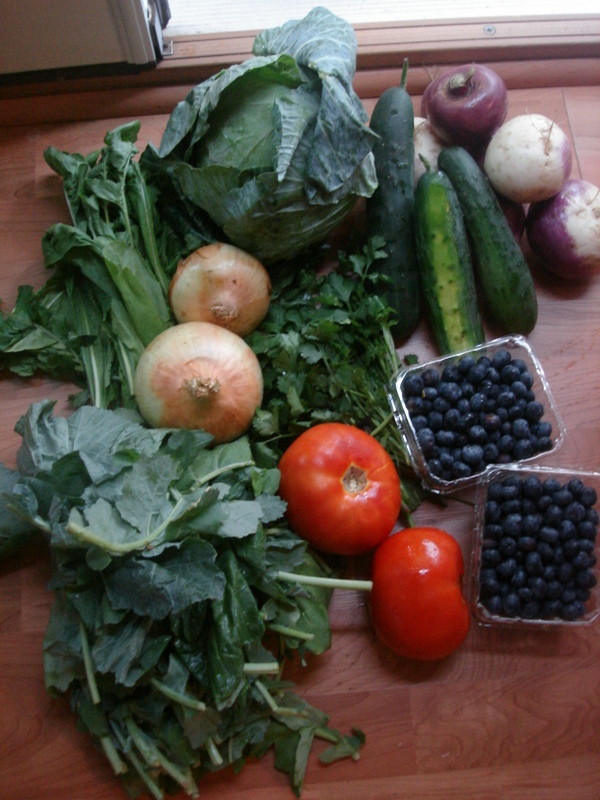 So here are some of the things you may have received in your boxes. I personally didn’t get the bok choy or yellow squash. I spoke with Byron earlier today and he said that the boxes are often very similar or will hold similar produce but may not be exactly the same.