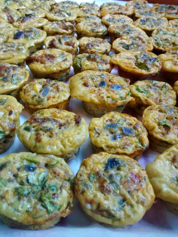 It’s quite a versatile recipe! Good for hors d’oeuvres especially for larger group of people, a healthy breakfast with leftovers for protein heavy snacks for later in the week, or it could even be baked in two full sized pie pans. And, true to the way I roll… simple. Quick… and not too labor intensive… so ie no crust!