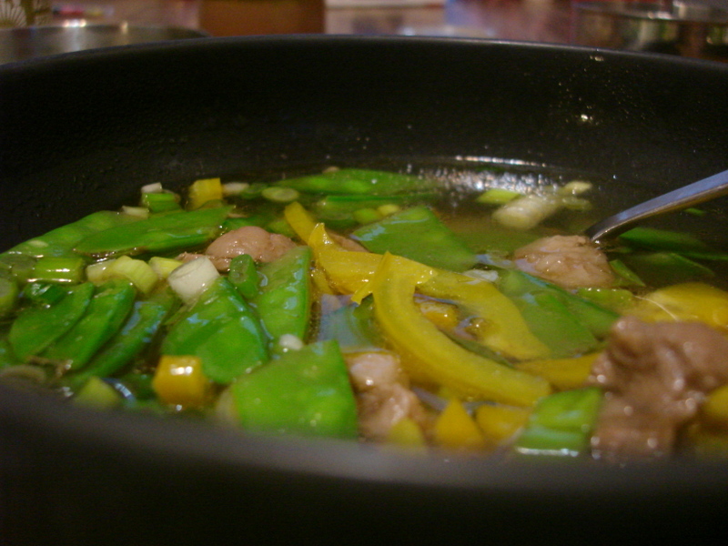 1½ cup 1-inch pieces diagonally cut snow peas (about 6 oz)